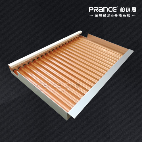 鋁合金瓦楞板采用鋁合金瓦楞芯和鋁合金板成型。成型后的瓦楞芯呈波浪狀,并加入粘合劑將于鋁合金面板粘合一起,成型后表面硬度比較好。實(shí)用新型的鋁合金瓦楞板不僅重量輕,用料少,產(chǎn)品的成本也低,且瓦楞的重疊波浪結(jié)構(gòu)提高板的平整度,也提高了板的承載力,承受壓應(yīng)力性能有了很大的提高,廣泛應(yīng)用于各類(lèi)需要造型的場(chǎng)所。
