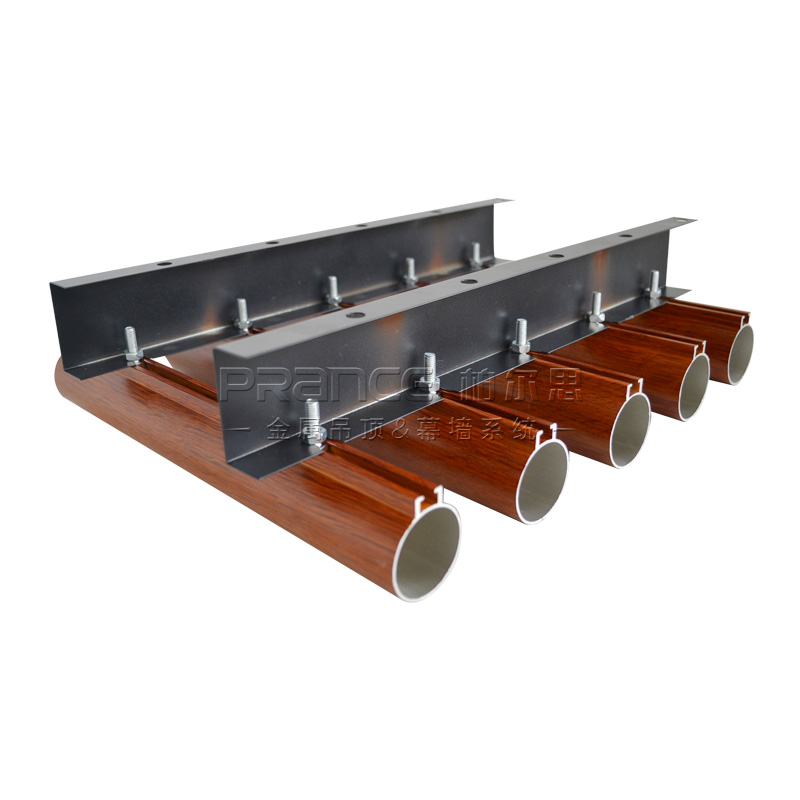 3、柏爾思木紋鋁圓管天花層次分明,安裝后整個(gè)空間和諧柔美的立體線條感,體現(xiàn)了簡(jiǎn)約明了的現(xiàn)代風(fēng)格??膳c鋁天花標(biāo)準(zhǔn)鋁扣板明架或者暗架配合設(shè)計(jì)。
